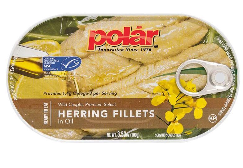 "Polar's Herrings are a great source of protein (including amino acids); it also provides a rich amount of Omega-3 plus several other vitamins and minerals that help promote your health! Our herring fillets should not be missed from a person's daily meal. The easy-to-pull tab provides easy and convenient access during your busy day at work or school. Ready to eat straight from the can, Polar's Herring Fillets requires no clean up!
