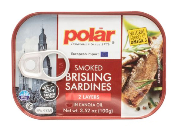 olar brisling sardines are wild caught in the Baltic Sea and imported from Europe. Rich in Omega 3, These small sardines are beheaded and cleaned before being carefully aligned in their can. This process ensures the flesh tender texture and an authentic taste of sardines. These tasty sardines are naturally wood smoked with a pinch of salt, GMO Free and gluten free, BPA NI packaging, and is an excellent source of Omega 3.