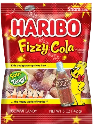These gummies are exploding with fizzy flavor! Pop the top off a bottle of HARIBO Fizzy Cola for classic cola taste with a fizzy, tangy finish.