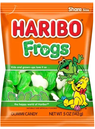 Keep your eye on these tasty HARIBO Frogs before they hop away! These delicious peach-flavored treats are always soft and chewy thanks to their half-gummi, half-foam texture. Grab yours for a hoppy celebration of fun!