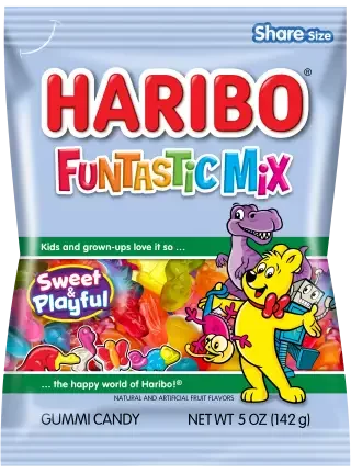 Talk about a party! HARIBO Funtastic Mix turns up the fun with a merry medley of new and unique characters like race cars, robots, chameleons & more! With so many new combos and flavors, every bite is a fun-filled adventure!