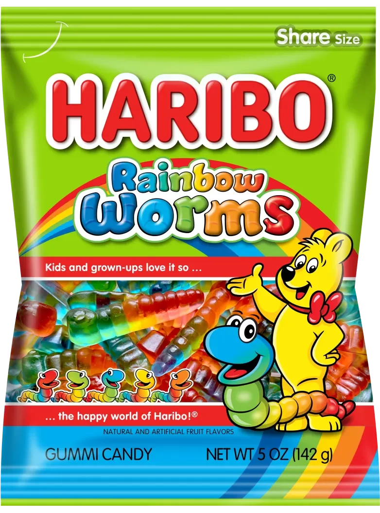 These squiggly, wiggly worms are as irresistible as they are cute! The playful shape of each HARIBO Rainbow Worm makes them perfect for eating whole or chomping your way through the lemon, strawberry, and black currant sections!