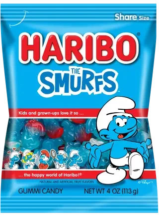 HARIBO Smurfs are bursting with Smurfy flavors like strawberry and raspberry! Join Papa Smurf, Smurfette, and the rest of the gang on a deliciously Smurfy adventure, one bite at a time!